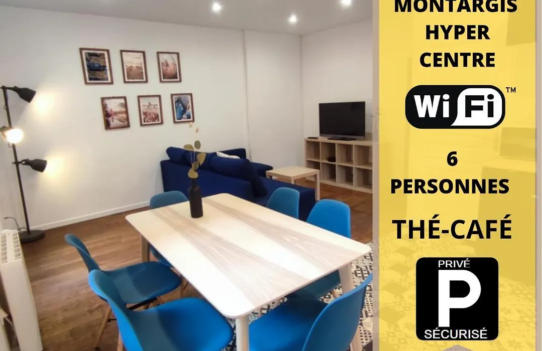Appartement Le Mini Loft Montargis centre 1 à 3 personnes climatisation parking linge wifi freebox Netflix